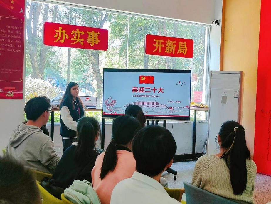 建筑管工供热研究生党支部于大学生活动中心展开了支部主题党日活动,活动的主题是:学习中国共产党第二十次全国代表大会精神。整个活动分为四个部分,分别是:重温入党誓词,党员讲微党课,时事讨论以及观影《领航》。