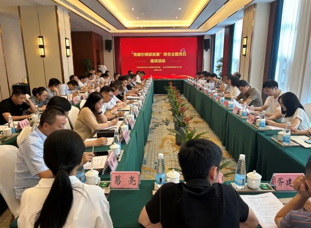 参观结束后,支部一行参加了与共青城市高新技术开发区党支部联合开展的“党建引领促发展”联合主题党日座谈活动。活动由共青城市高新区党工委副书记熊晓丽同志主持,熊书记对华东交通大学环境工程教工博士团表示热烈欢迎,希望双方秉承“互融互促、互帮互助、共建共创”的宗旨,共学共建熔炼党性、践行习近平生态文明思想,以高质量党建引领业务高质量发展。