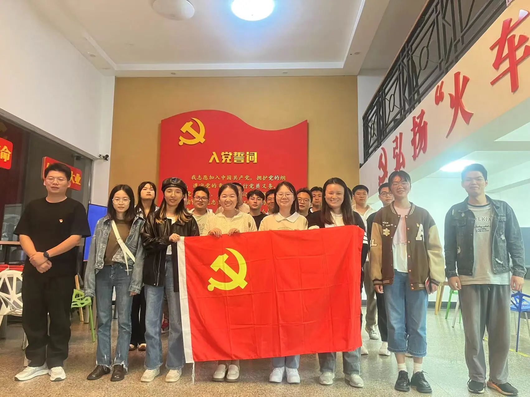 全体党员重温入党誓词,庄严宣誓,再一次将誓词铭记于心,外化于行,坚定全心全意为人民服务的理想信念,肩负起勇于担当奉献的责任,争做新时代优秀青年。