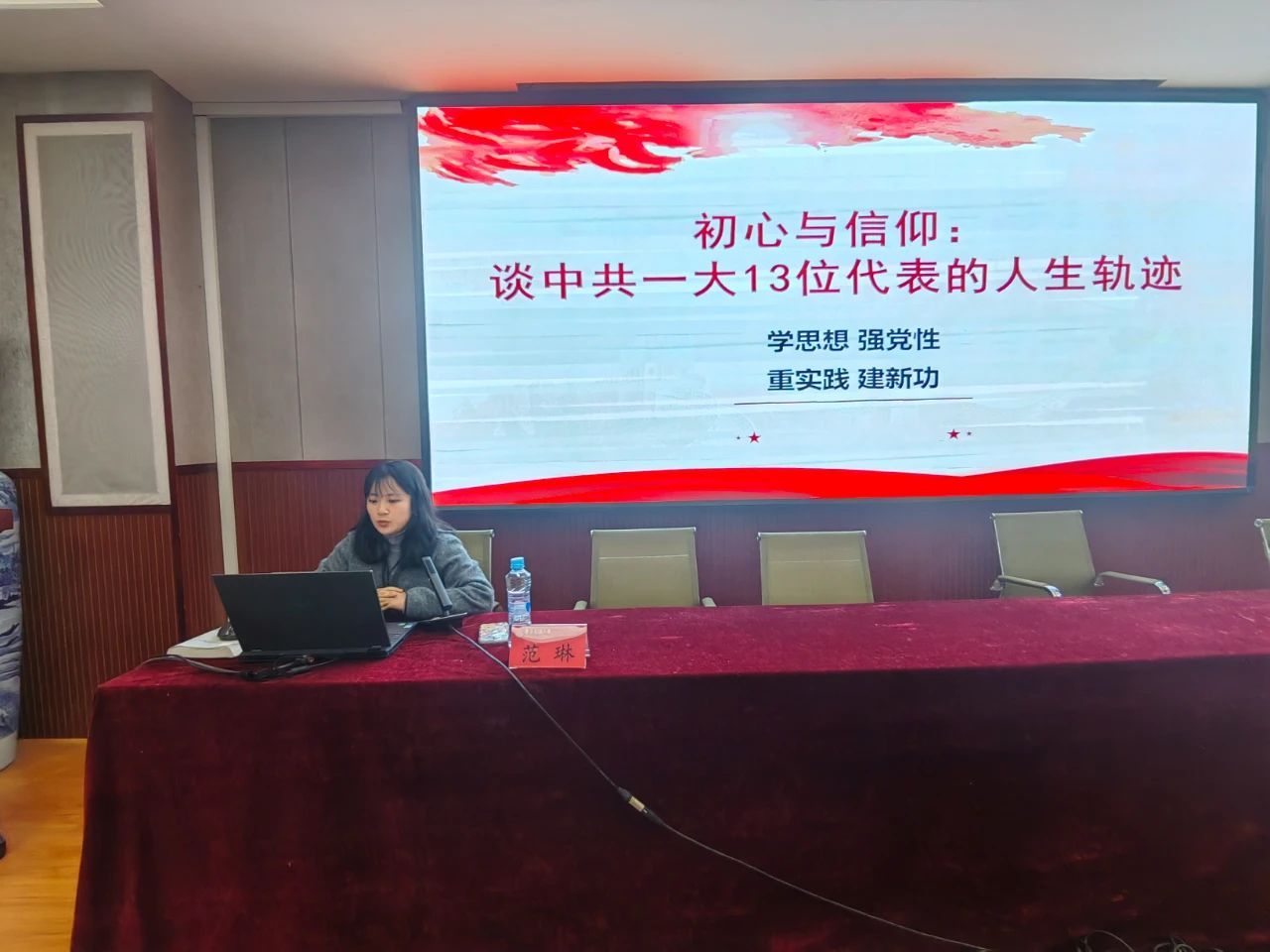 分党校于12月6日开展了第六期发展对象暨四十九期积极分子培训第五讲。本次党课由范琳老师主讲,题为《初心与信仰:谈中共一大13位代表的人生轨迹》。
