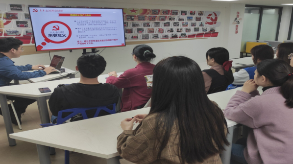 在支部副书记汪鑫的带领下,开展了关于党史回顾的党课,每位党员都分别分享了自己学习到的党史故事,并从中感悟良多。从1921年中国共产党成立,到1949年中华人民共和国成立,中国共产党通过浴血奋战实现了民族独立和人民解放,在这段艰难的历史中,中国共产党从幼稚走向成熟,引领中国人民走向一条光明的道路。