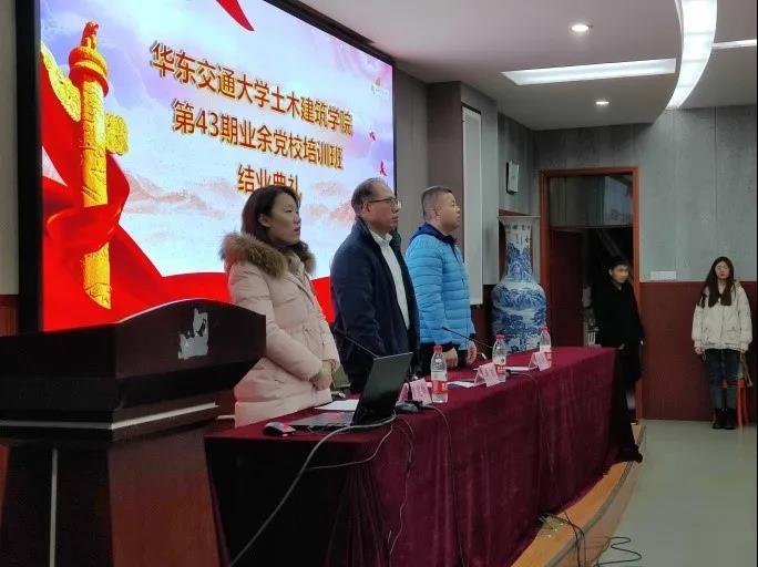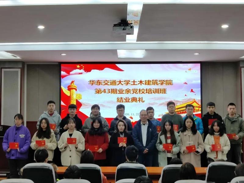 2020年11月27日下午,第43期业余党校培训班结业典礼在土建楼200举行。出席本次结业典礼的有院党委副书记兼分党校副校长郑轶老师、院学工办主任兼团委书记闫伟老师、院党委组织员兼党员教育管理中心负责人万雯怡老师及本期培训班学员。