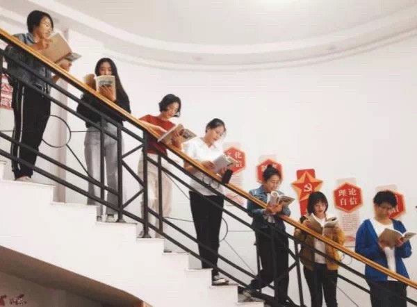 在自习后建筑学党支部整齐划一站在通往二楼台阶上朗读《红色家书》中方志敏烈士的绝笔信:“我们是共产党员,为革命而死,毫无所怨,更无所惧,只有两件事,使我们不能释怀:作(做)过某些错误,但经党指出,莫不立刻纠正,我们始终是党的正确路线的拥护者和执行者,是马克思列宁主义竭诚的信仰者……”大家在字里行间体会到了革命老一辈的像雷霆声音般震撼的决心。