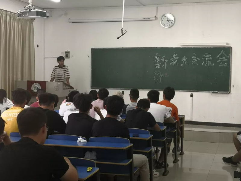 首先,保研到中国科学院的熊常亮学长通过 ppt 与新生交流了关于“大学生活的随想与漫谈”,他分别从课程学习,学生工作,学科竞赛和继续深造四个方面进行了讲解。在最后的结语部分,他对新生说道“要勇于尝试,不怕犯错,积极改正。”