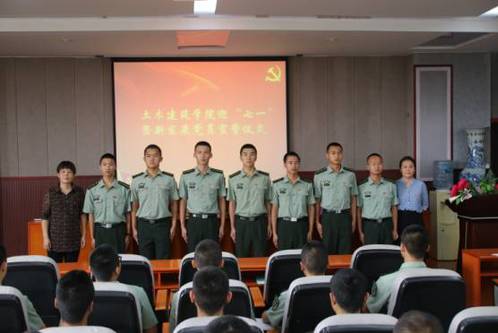 在“七﹒一” 建党节来临之际,土建学院党委于6月27日下午3点30分在土建楼会议厅200举行入党宣誓仪式。院党委书记李立玲、院党委副书记程浩、学工办主任兼团委书记闫伟、院党委组织员万雯怡等出席仪式,与会者还有各学生党支部书记。党委组织员万雯怡主持仪式,全体2017年上半年新发展党员参加仪式。