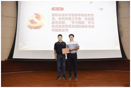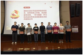 “先进基层党组织”,石钰锋同志获“优秀党务工作者”,王威、徐金辉两位同志获“优秀共产党员”称号,校党委委员、副校长徐长节同志为获奖支部和个人颁发了证书。