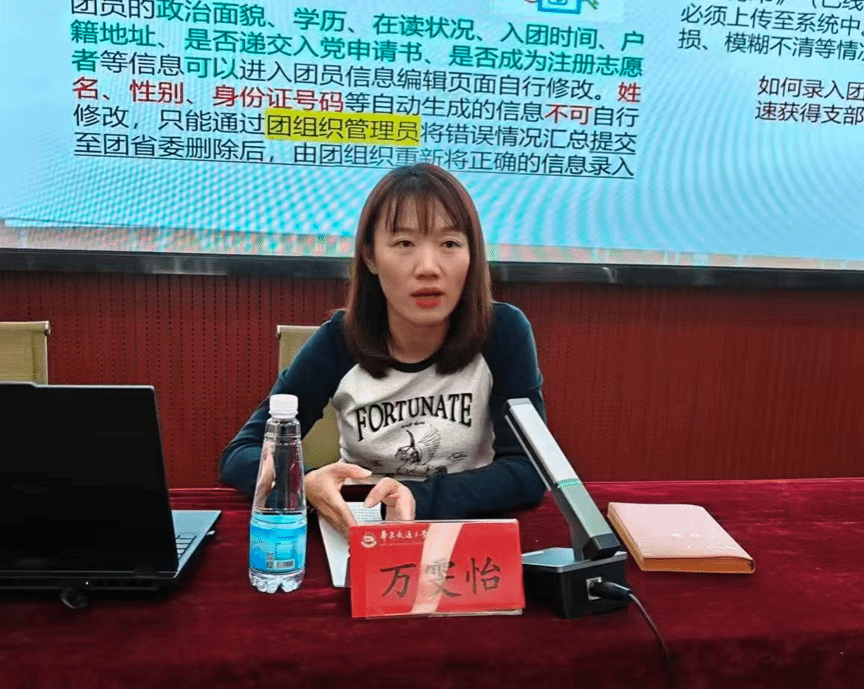 会上,万雯怡老师结合学院近学年团务工作数据与典型案例,围绕三大核心板块展开讲解与部署:首先要求规范团日活动开展,解决记录不规范等问题;随后讲解“智慧团建”系统操作,涵盖信息录入、关系转接等核心功能;最后全面解析入团、入党推优流程,明确资格、时间节点与考核要求,确保工作有序推进。