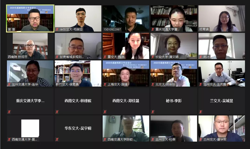 建筑学学科专业负责人,校规划设计研究院副院长李晨教授及建筑系毛骏亚老师带领的联合毕业设计师生团队6人与来自西南交通大学、北京交通大学、重庆交通大学、长安大学、兰州交通大学近百名建筑系师生及数十名校外专家学者通过网络会议的形式共同参加了“全国交大建筑联盟”2020年交通建筑联合毕业设计终期答辩。