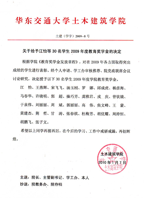 2009年教育基金奖励名单