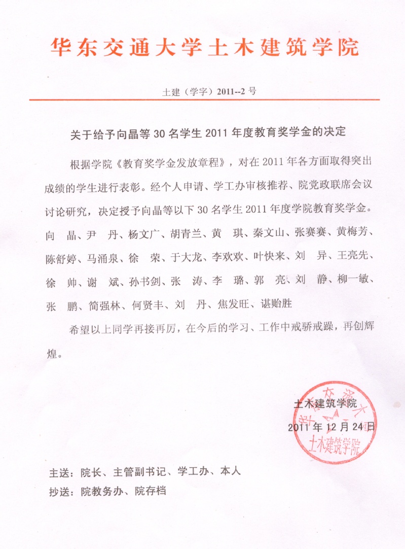 2011年教育基金奖励名单