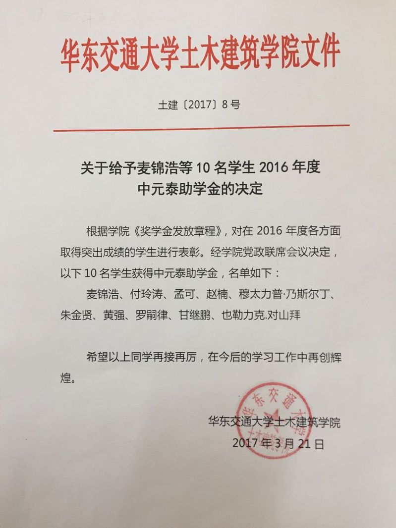 2016中元泰奖学金名单