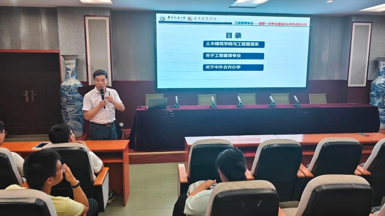 从专业发展沿革到学科交叉优势,从国内核心课程体系到国际联合培养模式,老师用详实的案例和清晰的逻辑,为新生们绘制了专业学习的“全景图”。现场新生专注聆听、积极互动,在一问一答间,对“工程管理+国际视野”的培养路径有了更具象的认知。