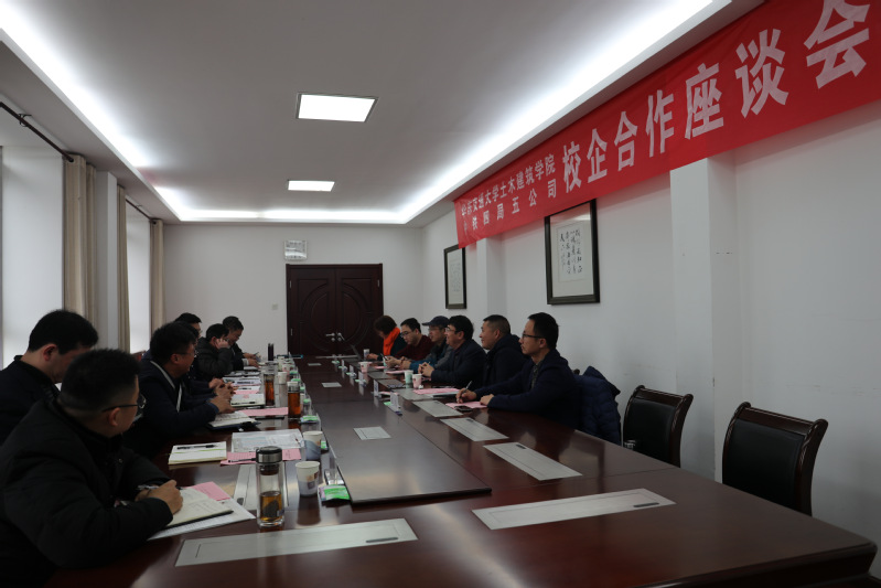 四局五公司人力资源部部长缪九龙向大家详细介绍了五公司的发展历程和取得的业绩荣誉;五公司总工程师汪家雷结合公司在建项目科研情况,提出了下一步合作的初步框架和意向。双方就加强人才交流培养、实习基地建设、试验与检测、科研服务等事项进行了深入探讨交流,达成了有关共识。