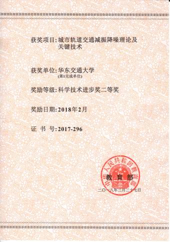 近日,教育部科技发展中心网站正式公布了《关于2017年度高等学校科学研究优秀成果奖(科学技术)奖励的决定》,我校为第一完成单位,由雷晓燕教授主持完成的成果“城市轨道交通减振降噪理论及关键技术”荣获2017年度高等学校科学研究优秀成果奖科学技术进步奖二等奖。