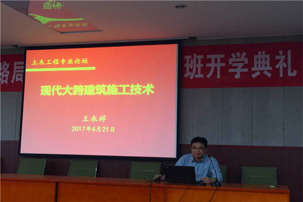 于土建楼200召开以现代大跨建筑施工技术为主的讲座,工程管理教研室主任王永祥教授担任主讲。91直播