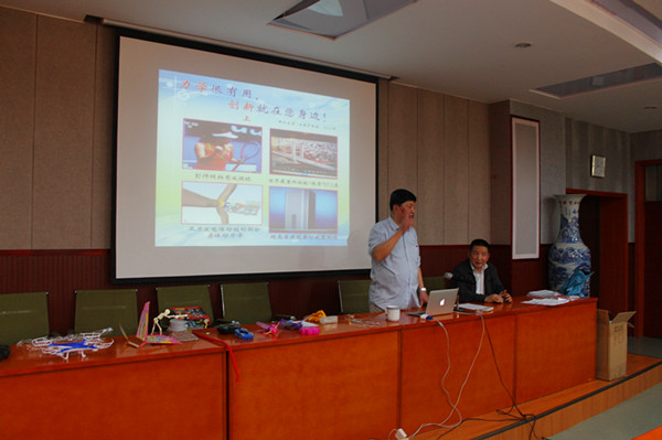 教授结合具体实例和自身经验,围绕衣、食、住、行、娱乐、体育、生产生活等展开了基础力学在不同领域的创新应用,如基于减振原理的多孔鞋底、有钱能使鬼推磨的四连杆结构分析、网球拍减震器原理、基于黄金分割法设计的八音盒放大功效等。讲解过程中,他还给大家表演了几个魔术,并告诉大家这其中的奥妙及原理,启发了与会者的思维。整个报告深入浅出,理论联系实际、通俗易懂,具有很强的亲和力和感染力,不时赢得台下师生的阵阵掌声。