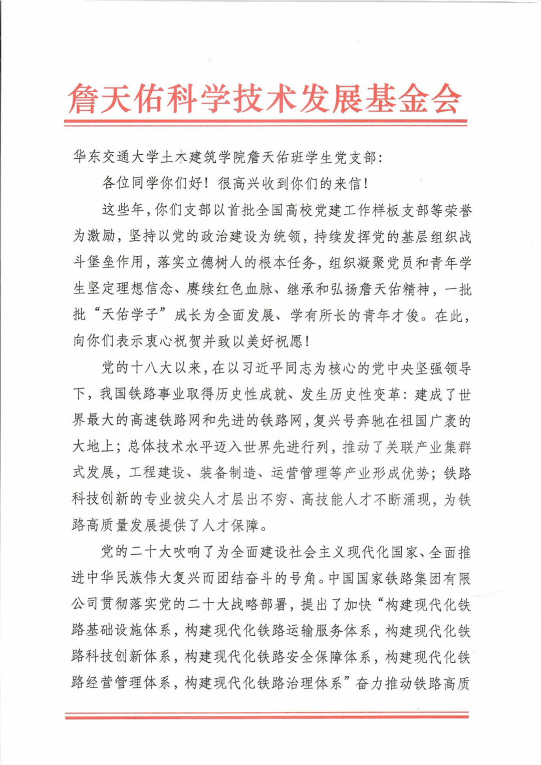 班级坚持把思想政治建设放在首位,严格落实“三会两制一课”,狠抓政治理论学习。在班级成员的共同努力下,营造了一个爱党爱国爱校、积极团结向上的班集体。在全国党建工作样板支部——詹天佑班学生党支部的带领下,班级建立“促学习、推活动、重培养”的党建带团建工作机制,教育和引导团员青年青春心向党,逐梦绽芳华。组织开展纪念詹天佑先生诞辰周年主题活动,赴詹天佑故居婺源、红色圣地井冈山等开展研学活动,坚定做天佑传人的理想信念。