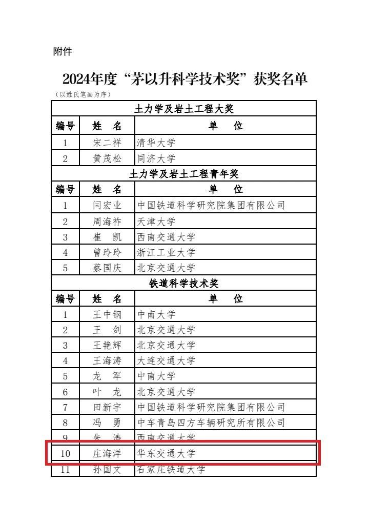 庄海洋教授荣获铁道科学技术奖,成为江西省唯一获此奖项的高校教师代表。这一荣誉不仅是对庄海洋教授个人科研能力与学术水平的认可,更凸显了91直播