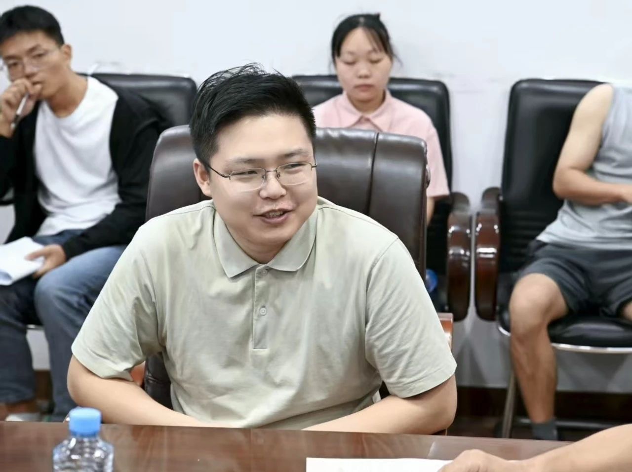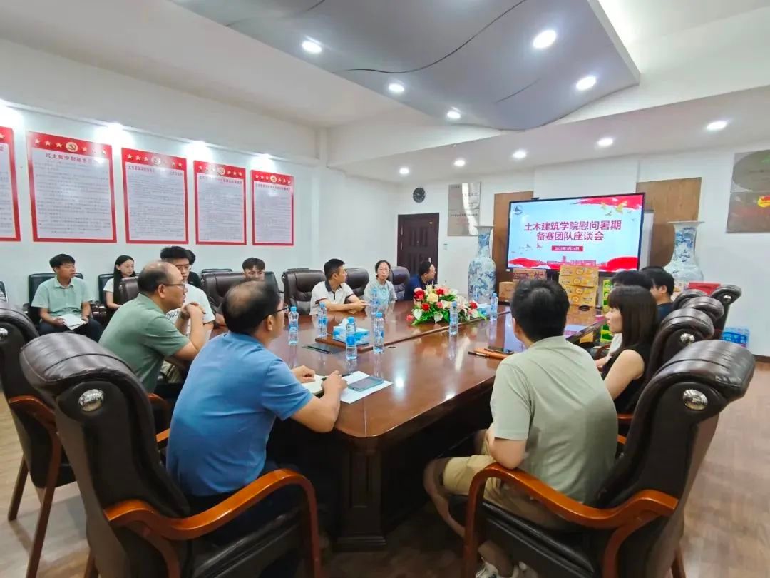 召开暑期备赛团队慰问座谈会,学院党委书记刘永胜、党委副书记郑轶、学工办主任兼团委书记万雯怡出席,与备赛师生团队亲切交流,传递关怀、鼓舞士气。项目团队指导老师郭忠照、祝泽兵、张立卿、康慧伦、曾月、程小松参加座谈会,座谈会由郑轶主持。