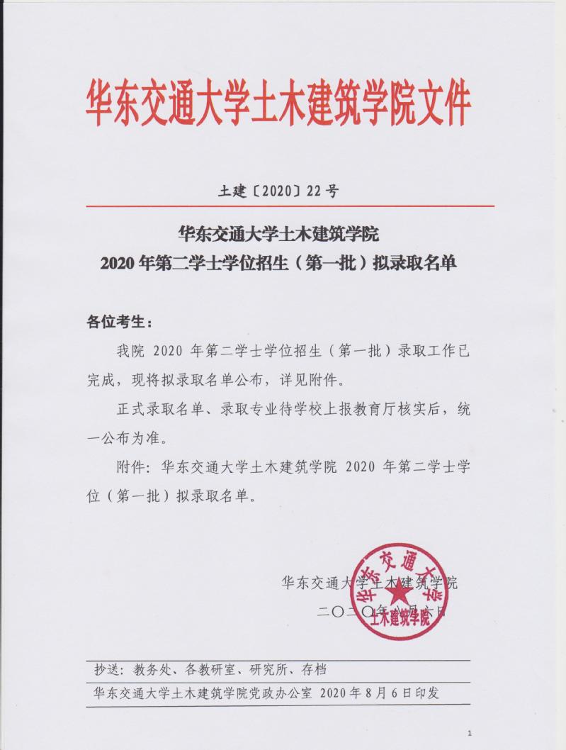 华东交通大学 91直播 2020年第二学士学位招生(第一批)拟录取名单