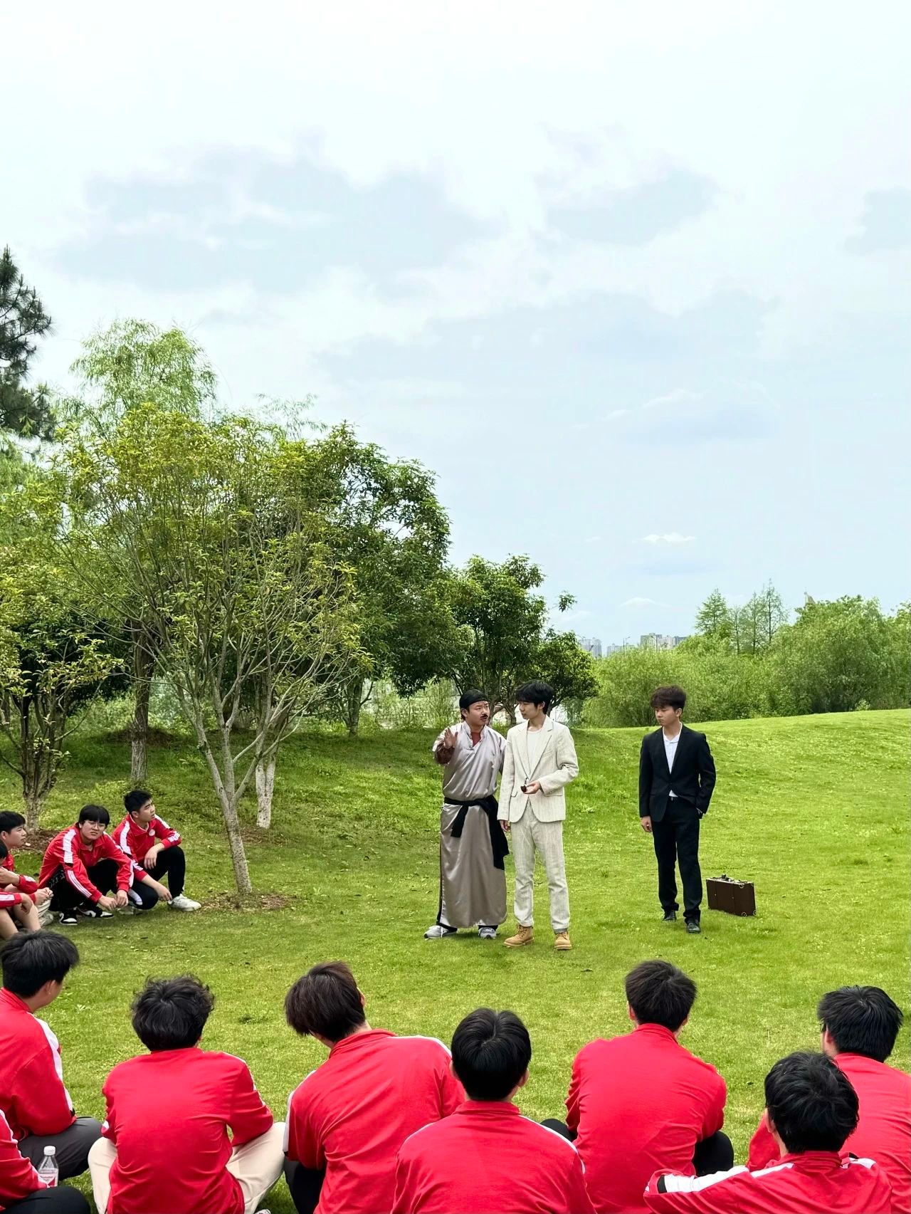 参观完南昌舰后,李云帆、王程申、董一非等同学为同学们现场表演了一段话剧《詹天佑》快闪片段,大家在精彩热烈的剧情中仿佛身临其境感受詹天佑先生修建京张铁路的伟大事迹。
