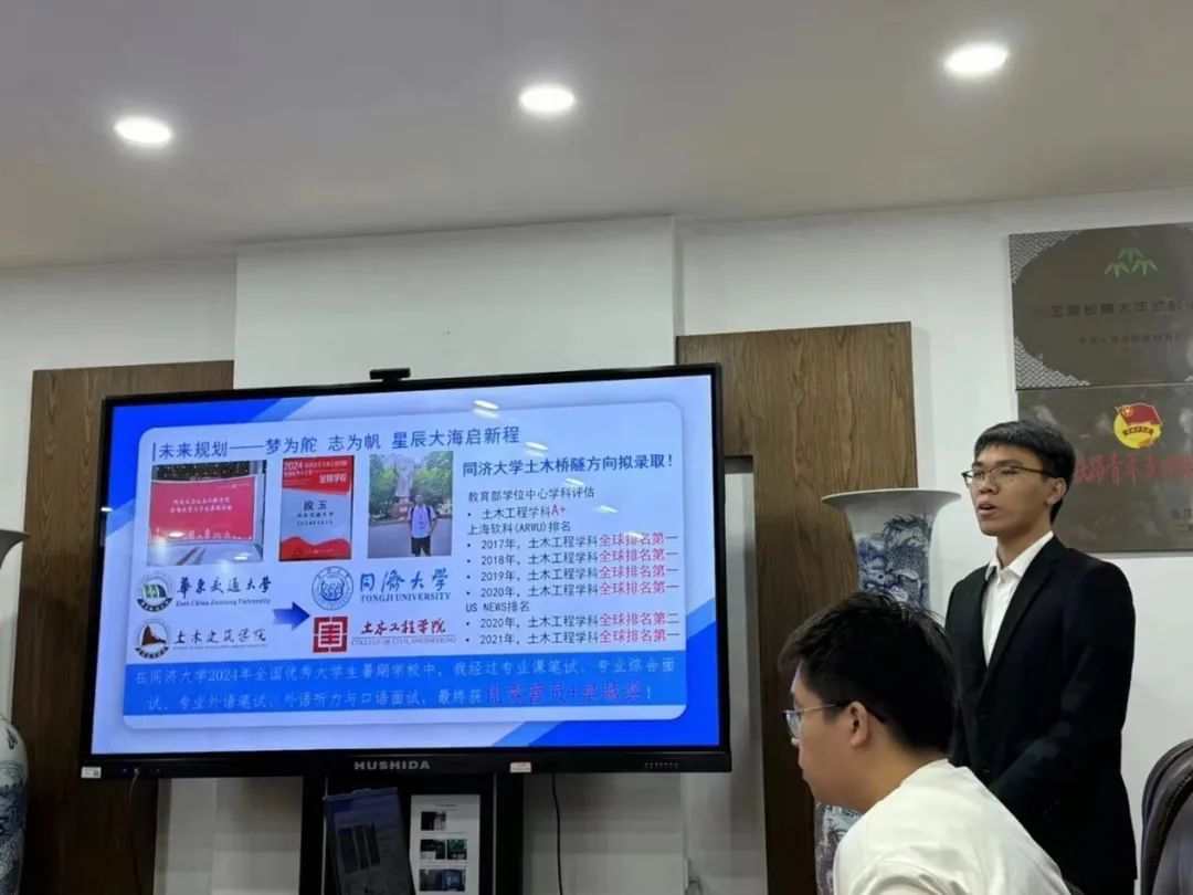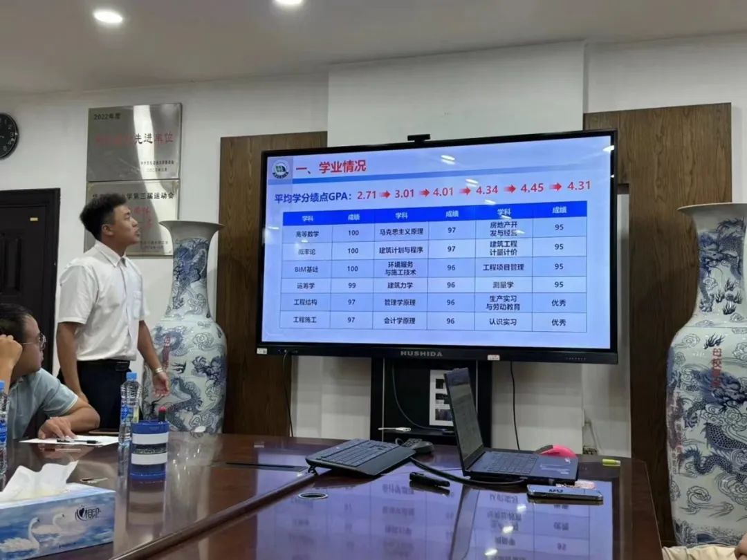 经个人提出申请,各班级评议小组进行民主推荐,并经学院进行资格初审,确定13名国家奖学金候选人进行公开答辩。参加答辩的同学们从专业学习情况、思想政治、个人成就、未来展望等各方面对个人情况进行简单汇报。他们精神饱满,将自己最好的状态展示给各位评委。同时他们有条不紊地回答相关问题,从多个角度展现自身良好的精神面貌和出色的能力,更展现了土建学子的风采与担当。