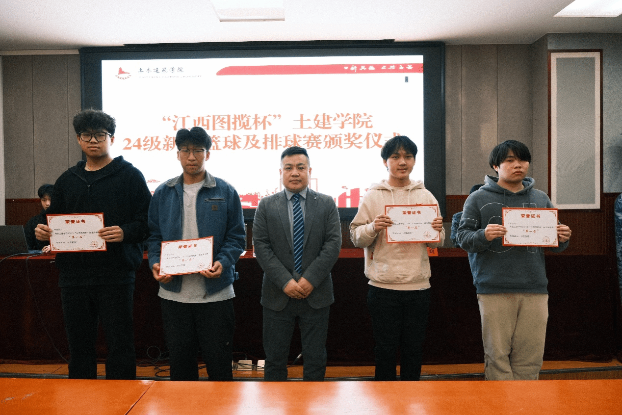报告会前,校友李永珍和公司销售部经理邓梦云、综合部经理宋利娟分别为“江西图揽杯”土建学院2024级新生篮球赛、排球赛获奖代表队颁奖。