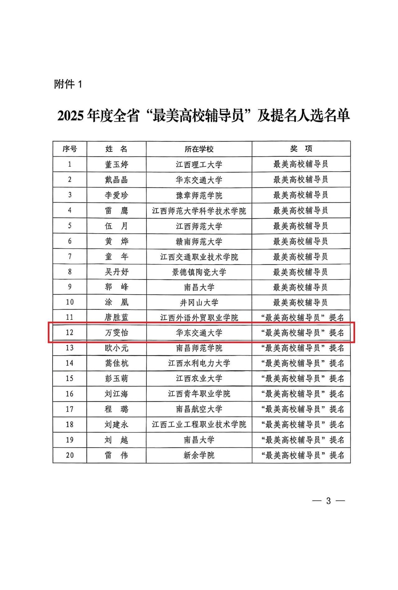 近日,中共江西省委宣传部和江西省教育厅联合发文公布2025年度全省“最美高校辅导员”“最美大学生”推选结果,91直播