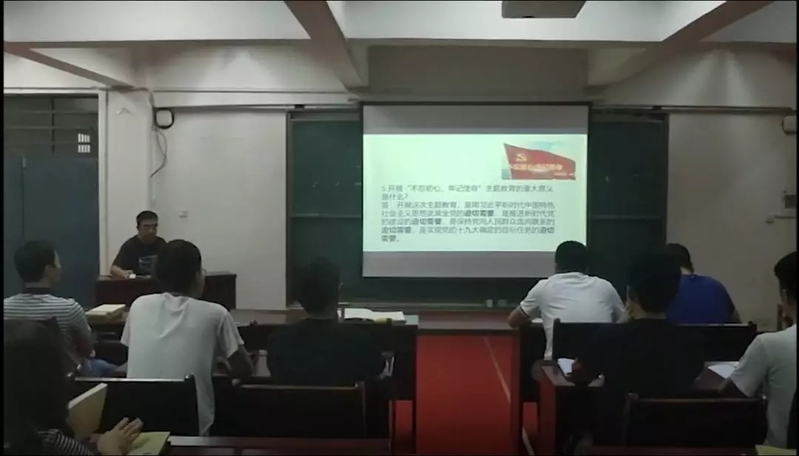 市政环境暖通教工党支部、环境工程研究生党支部与环境工程专业学生党支部联合开展了“不忘初心、牢记使命”的主题教育。教工党支部书记鲁秀国老师根据对“不忘初心,牢记使命”专题教育的18个知识点的解读,给教职工党员和学生党员上了一堂深刻的微党课。