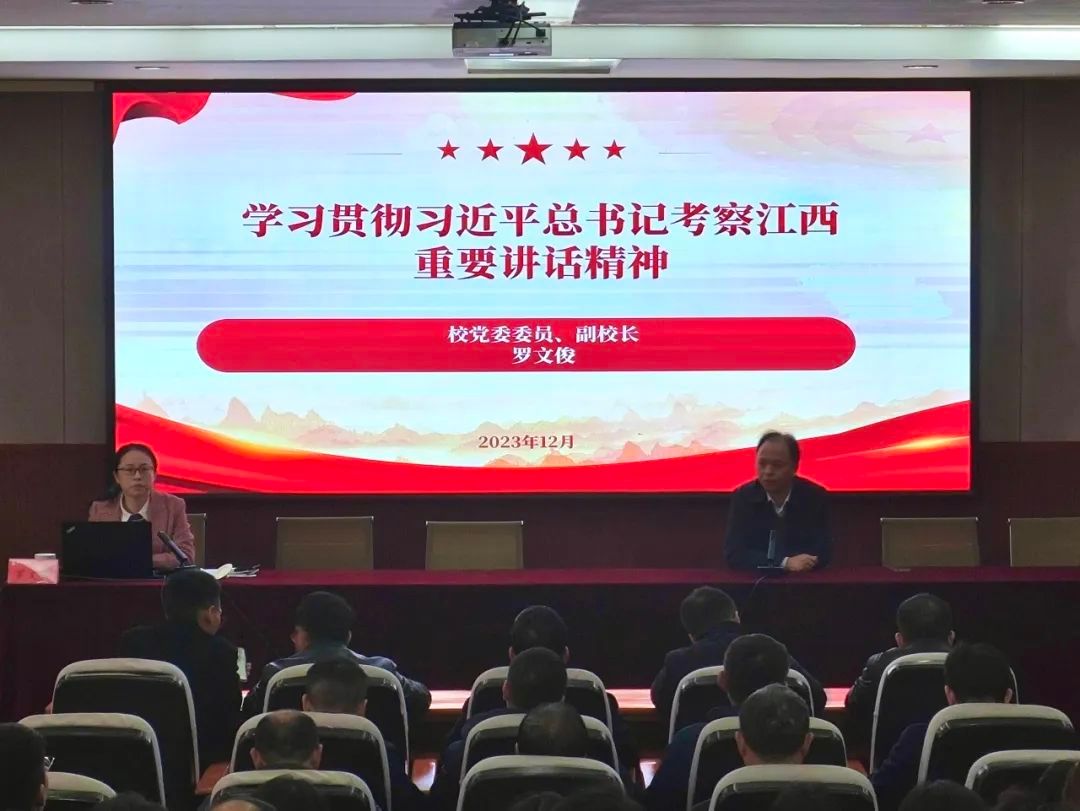 在教9栋200报告厅举办了习近平总书记考察江西重要讲话精神宣传会,由校党委委员、副校长罗文俊作宣讲报告,土建学院、科发院、招就处、外联处、交通学院、国家重点实验室(轨道中心)教职工及学生党员代表共150人参加。