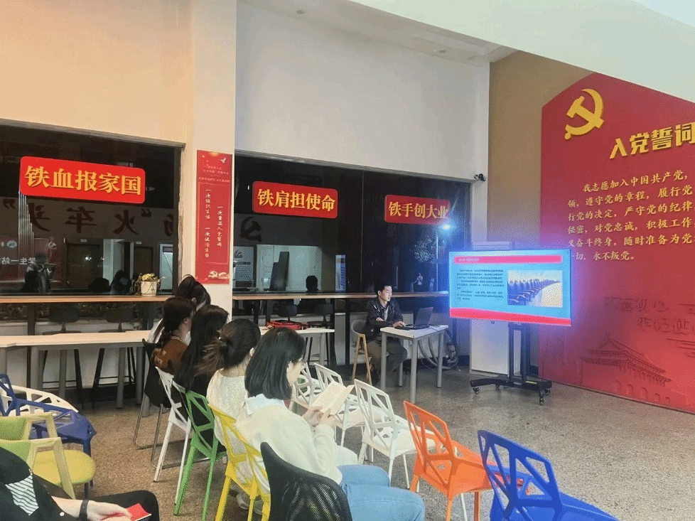 在支部书记李超将的带领下,党员们开展了微党课学习。李超将同志分别从高举伟大旗帜,凝聚广泛共识和激发奋进热情三个方面分享了党的十八大以来,以习近平同志为核心的党中央始终坚持全心全意依靠工人阶级方针,关心关爱工人阶级和广大劳动群众,为推进党的工运事业和工会工作领航定向。同时向同志们发出作为学生党员要树立终身学习理念的号召,得到在场同志们的一众响应。