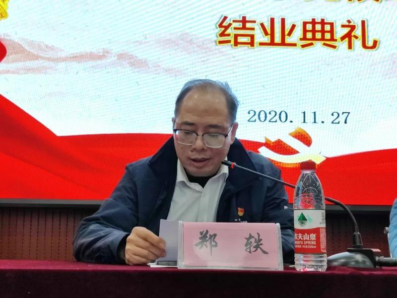 郑轶首先向顺利结业的学员及受表彰的优秀学员,表示了衷心的祝贺,向各位的辛勤付出表示了衷心的感谢!同时,对党校成员们寄语厚望,向学员们提出了三点希望和要求:一是要继续加强政治理论学习,对我们大家来说,培训班的结业,不是学习的结束,恰恰应该成为我们加强政治理论学习的新的开始,通过这一次的党校培训,大家对党的基本知识,基本理论,有了初步的系统的了解和认识,希望大家趁热打铁,巩固学习成果,激发学习乐趣,进一步的认真学习习近平新时代中国特色社会主义思想,学习党的十九届五中全会精神,加强学习,用党的创新理论,武装头脑,增强“四个意识”,坚定“四个自信”,做到“两个维护”,这也是我们党对新时代大学生的重要的要求。二是不断树立正确的入党动机,入党动机就是为什么要入党,这是每一名共产党员在入党前和入党以后都要深深思考的问题,通过这次的学习培训,我想大家应该有一个初步的答案,但还是要认真的思考,为什么要入党这个问题,要真正做到从思想上入党,这样才能够确保党的队伍在思想上和政治上的纯洁性,确保党的战斗力,组织上入党一生一世,思想上入党一生一世,当前,广大要求入党的新的学生的主流是好的,但在入党的动机上也出现了一些值得我们注意和加以引导的问题,去年,我们全党上下认真开展了不忘初心、牢记使命的主题教育,就是查找并解决党内存在的违背初心和使命的各种问题,党的十九届四中全会又把不忘初心、牢记使命主题教育作为一项制度,这就充分的说明以习近平同志为核心的党中央,把全面从严治党不断引向深入,对党员教育管理更加重视,所以我们更要重视加强学生党员的培养教育,坚持成熟一个,发展一个,高标准,严要求,党员的发展着重考察入党动机,目前,我们大学生的组织发展,要把握几个主要标准和条件,我也反复强调,我们一定要多做这个政治标准,这也是给我们传递一个什么信号呢,这就是,不是说你学习摆在第一,组织一定要接收我,或者怎么样,我们要对学生的各个方面的素质,尤其是他的政治素质,要进行一个认真的考察,希望在座的入党积极分子要积极主动向组织汇报思想,向优秀党员学习和看齐,自觉接受组织的教育引导,不断树立正确的入党动机。三是要自觉时刻发挥模范作用,追求入党,加强政治理论学习是基础,端正入党动机是前提,能够躬身实践是目标。习近平总书记对新时代中国新人提了六点要求,之前我对学生干部也提到过,一要树立远大理想,二要热爱伟大祖国,三要担当时代责任,四要勇于努力奋斗,五要练就过硬本领,六要锤炼品德修为。这是我们每一位新时代大学生努力的方向,奋斗的目标,刚刚结束的党的十九届五中全会,提出了“十四五”发展目标和到2035年远景目标,其中也明确了要建设高质量教育体系,那么对这个高质量教育体系,就特别强调了要求全面贯彻党的教育方针,坚持立德树人,培养德、智、体、美、劳全面发展的社会主义建设者和接班人,要增强学生文明素养,社会责任意识,实践本领,我们同学要不断的朝着这个方向去努力!所以希望在座的入党积极分子,你们要在思想,学习,工作,生活等方面以党员的标准严格要求自己,做好本职工作,走在前面,干在实处,创先争优,在连续服务学生完成重大任务中勇于担当作为。