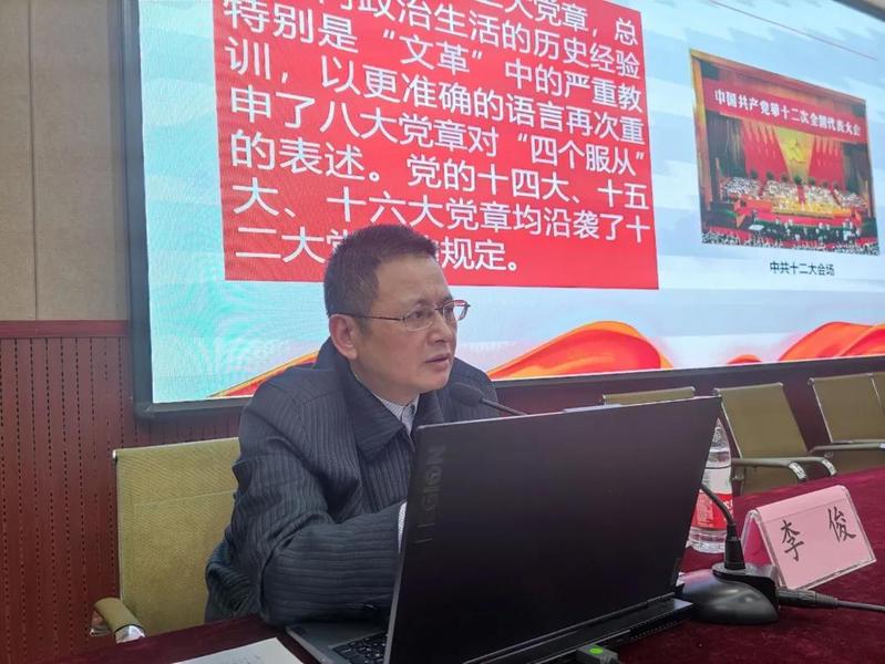 为贯彻全面建成小康社会、全面深化改革、全面依法治国的方针,提出新时代党的建设总要求,写入新修改的党章,为增强我们党自我净化、自我完善、自我革新、自我提高能力,11月13日晚上,华东交通大学纪委李俊老师在土建楼200会议室给本期入党积极分子上了一堂以《党的纪律,全面从严治党》为主题的党课。
