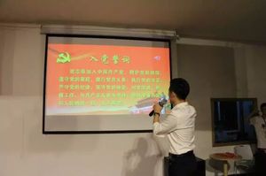 道路与铁道工程研究生党支部学生党员吴送英同志带领全体党员举起右拳,重温入党誓词,郑重宣誓。