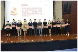 “先进基层党组织”,石钰锋同志获“优秀党务工作者”,王威、徐金辉两位同志获“优秀共产党员”称号,校党委委员、副校长徐长节同志为获奖支部和个人颁发了证书。