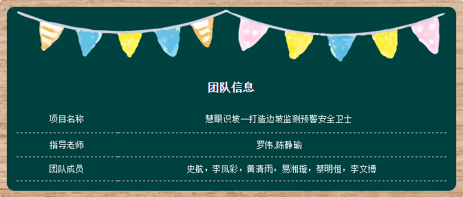 相信经过团队的努力,该项目能实现其预期目标,并最终做到运用边坡监测预警安全卫士为祖国解决边坡地质灾害问题。