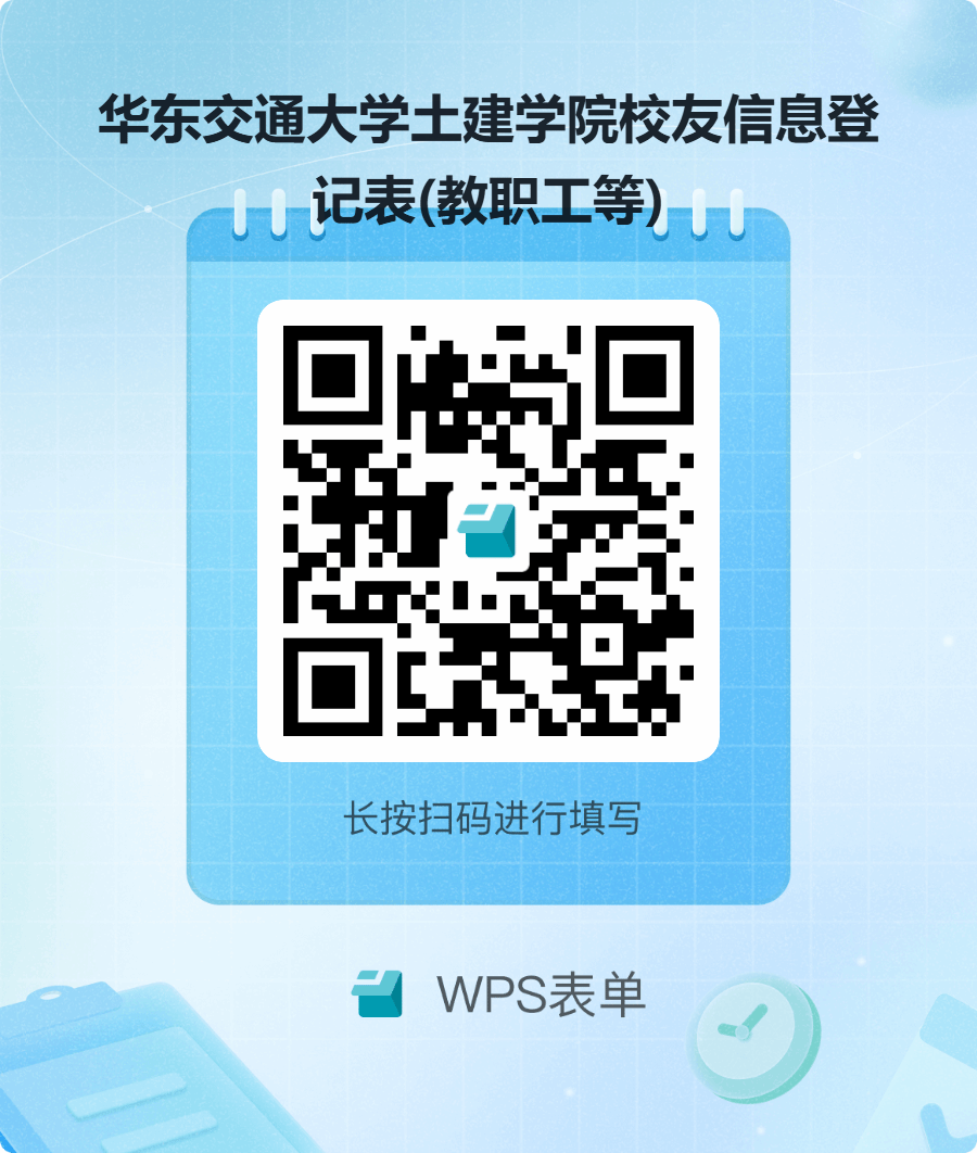 学院校友会愿成为连接你我的温暖纽带——这里没有旁观者,唯有同行人。为凝聚力量、续写华章,我们正在完善校友信息库,诚挚邀请您扫码登记,加入这个属于所有土建人的精神家园。让我们跨越山海、聚星成火,共同筑就未来的崭新篇章。