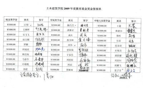 2009教育基金奖金签收单