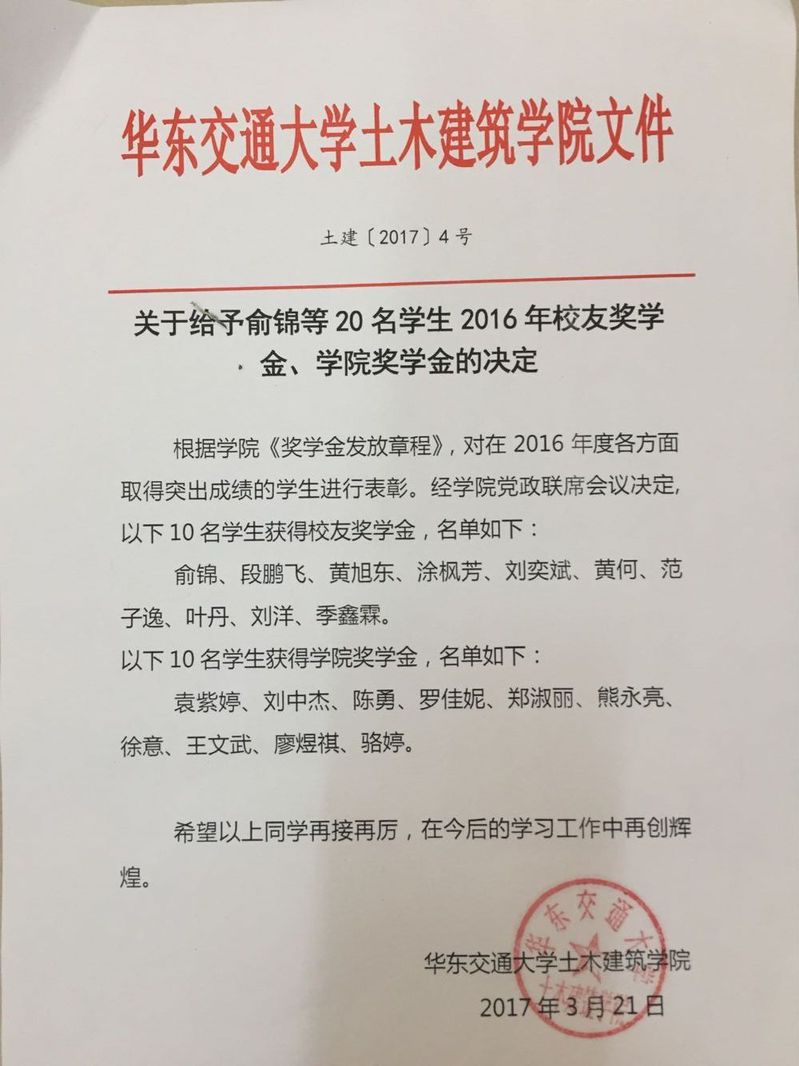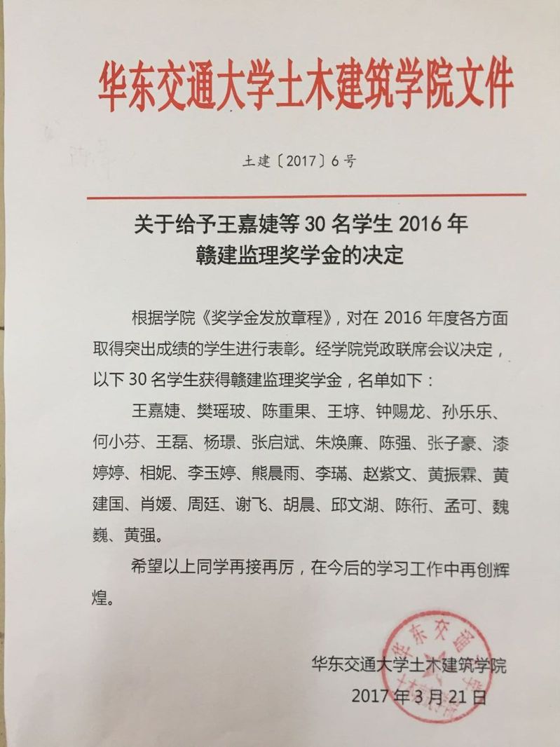 2016赣建监理奖学金名单