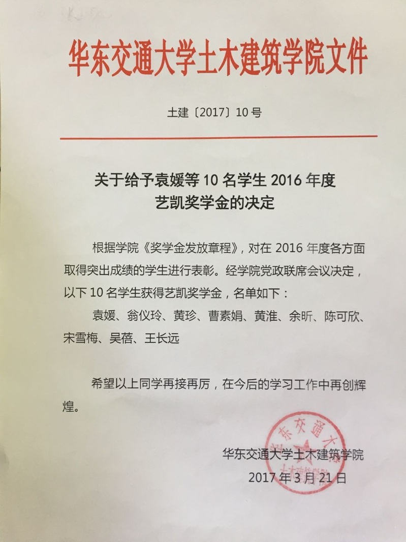 2016艺凯奖学金名单