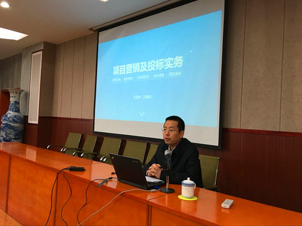 王高工准备充分,讲授的课程形象生动。他首先用简洁明了的话语介绍了工程项目营销六要素、工程项目营销组织架构、工程项目营销四阶段,并结合自身所完成的实际工程项目营销案例分析工程项目投标全流程,将自己的所思所想所得传授给现场学生,通俗易懂,让他们领会到工程项目营销工作是一项全面性、精细化的技术经济组织工作。