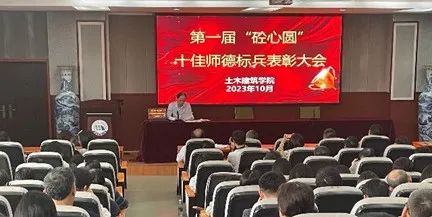 第一届“砼心圆”十佳师德标兵表彰的决定》,王永祥、许开成、麻宏强、万雯怡、程海根、唐朝春、鲁秀国、石钰锋、陈莘莘、李一晖共十位老师荣获土建学院第一届“砼心圆”十佳师德标兵荣誉称号。陈水生书记指出,学院开展师德标兵评选表彰,旨在表扬先进,树立榜样,激励广大教职工员爱岗敬业,涵养高尚师德,潜心立德树人。