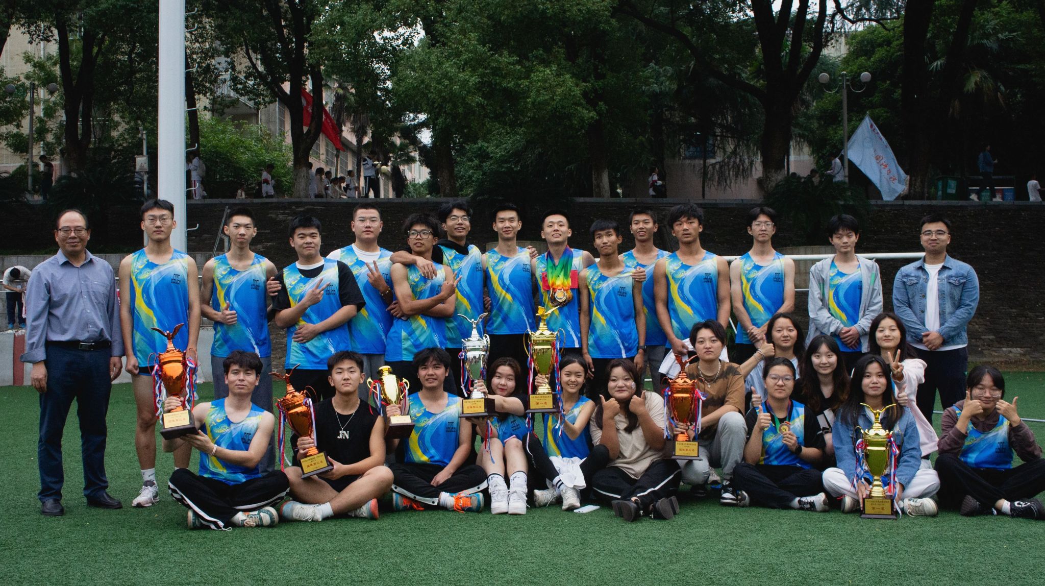 在今年的体育运动盛宴中,土建的师生们不仅传承了体育精神,也彰显了青春活力,重现了土建雄风。尤为突出的是,在本届校运动会,土建学子在田径项目中斩获金牌8枚,同时还刷新了男子800米、男子4×400米接力的校运会记录,以总分212分(较去年高出90分)获得田径项目全校第二!在球类等单项赛事中,再次问鼎学生男足、男排、女篮冠军,最终也取得了运动会总分第二的出色成绩,刷新了学院在校运会上十余年来最好成绩,实现了新的突破!此外,土建学院的教工团体又以总分第一名的表现傲视群雄,连续四年蝉联总分第一名,并展现了持续进步的势头。