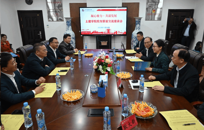 校党委委员、副校长罗文俊,科发院院长耿大新,对外联络处副处长、校友办公室副主任、校友(总)会副会长吴亮秦,土建学院党委书记陈水生、副院长方焘、分工会主席潘荣、党政办副主任曾向荣、学工办副主任华罗娟,来自全国各地校友会的20余位土建学院校友,学生代表参加座谈会。土建学院党委副书记郑轶主持座谈会。