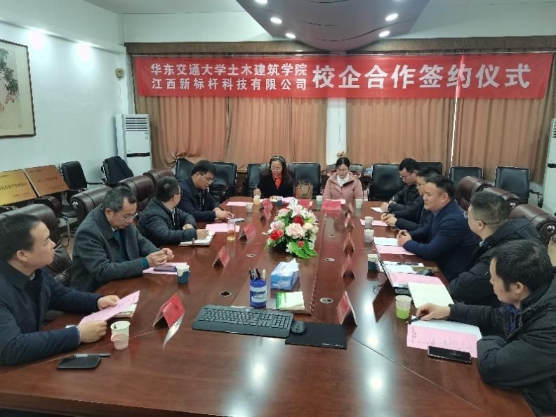 与江西新标杆科技有限公司在土建楼302会议室举行校企合作签约仪式。江西新标杆科技有限公司总经理肖飞、副总经理郭旭等一行5人来校走访交流, 91直播