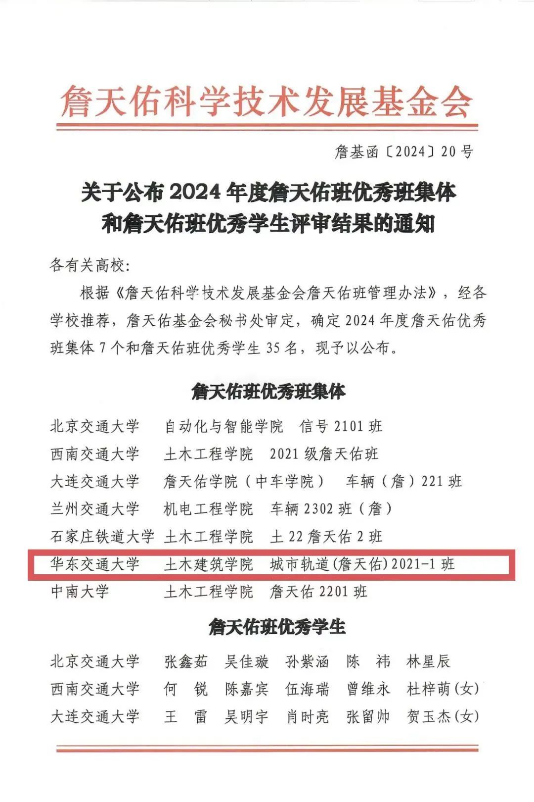 詹天佑班获评