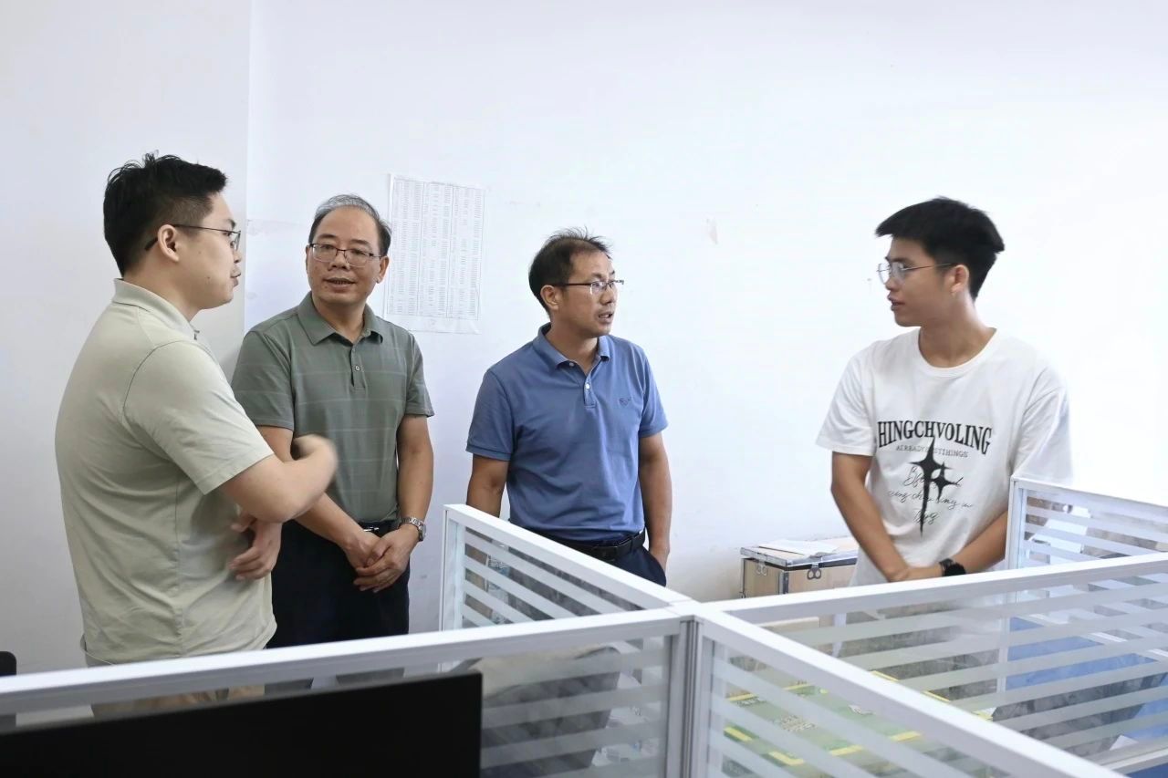 随后,刘永胜、郑轶在指导老师的陪同下,深入各团队的工作室进行实地看望和现场指导,与正在紧张备战的师生们进行了面对面的交流探讨。针对项目展示和评委问辩的关键事项,分别给予了具体的优化建议和应对技巧的指导,鼓励大家注重把控细节,展现最佳水平。