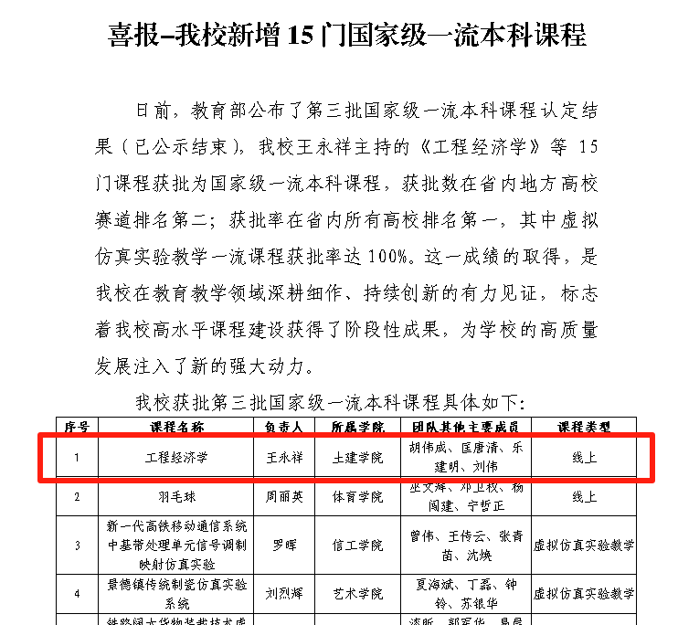 王永祥教授主持的《工程经济学》课程凭借丰富的教学内容、创新的教学方式与显著的教学成效,成功获批“国家级一流本科课程(线上)”,这是91直播