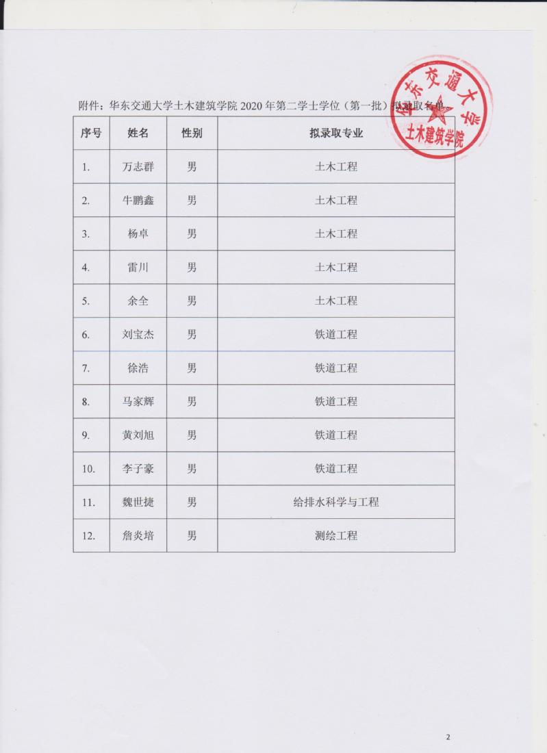 华东交通大学 91直播 2020年第二学士学位招生(第一批)拟录取名单