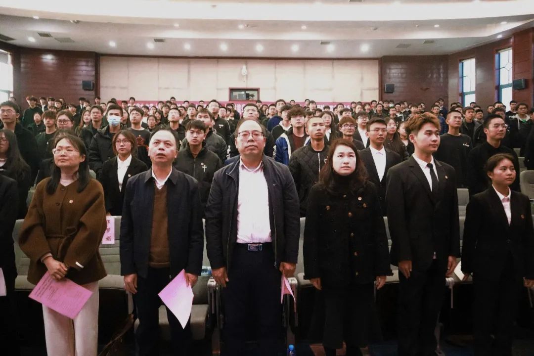 (全体师生奏唱国歌)